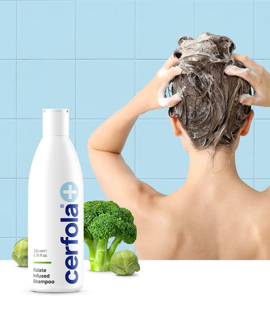 Folate, naturally present in green leafy vegetables, is essential for the development and growth of our body and hair. Folate is a vital nutrient that promotes psychological and mental well-being, thanks to its beneficial effects on focus, concentration, and cognitive abilities. The addition of Folate supports the body’s energy supply and also ensures good mental health. Take care of yourself, both inside + out, with the products and supplements from Cerfola®.